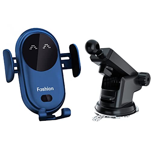 Support de chargeur de voiture sans fil, 15 W Qi à charge rapide, fixation automatique, support de téléphone portable, grille d'aération, pare-brise, tableau de bord, bras long à ventouse, support de