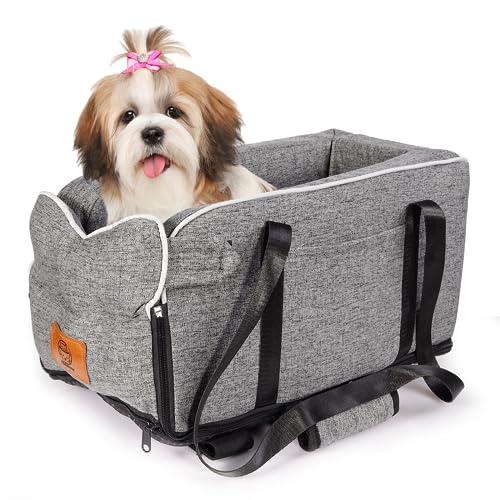 Sièges de Voiture pour Chiens de Petite Taille- Console Centrale pour Chiens et Chats 5.4kg - Siège de Voiture Portable Amovible et Lavable Fixation Ceinture Facile Voyage