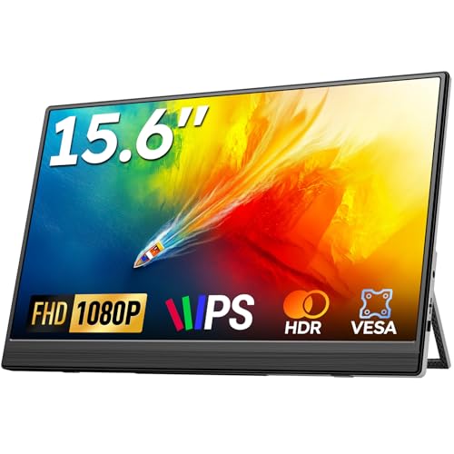 Omiodo Écran Portable 15,6'' FHD 1080P IPS Ultra-Mince Eye-Care avec Support, Fixation VESA, Haut-Parleurs, Ports Mini HDMI/USB-C, Compatible Laptop/PC/Mac/Xbox/PS4/5/Switch