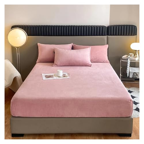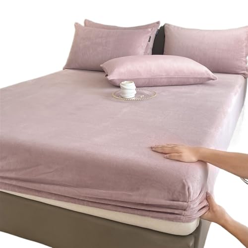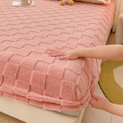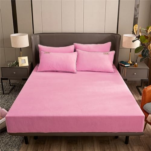 Drap Housse Flanelle Drap-housse élastique chaud et épais en flanelle de couleur unie, housse de matelas d'hiver réglable, linge de lit en velours, tailles 90/160/180/200 Drap Housse(Pink,140x190x25cm