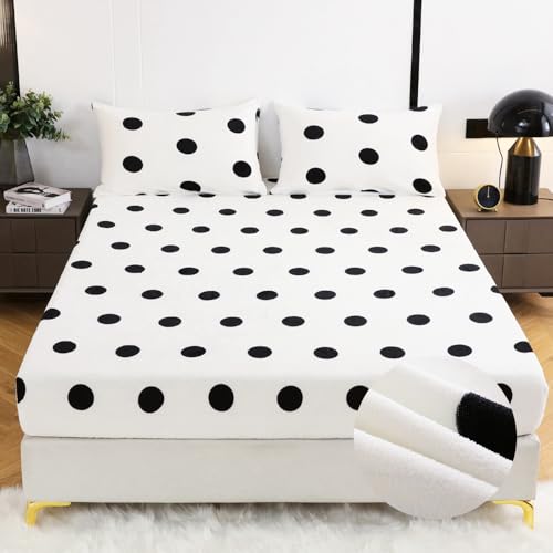 Mateju Drap Housse en Flanelle Drap Housse en Polaire d'hiver ,AVCE Bonnet 25 cm, Toucher Cachemire Doux et Moelleux, Drap de Lit Flanelle Super Chaud pour Matelas Épais (150x200cm,à Pois)