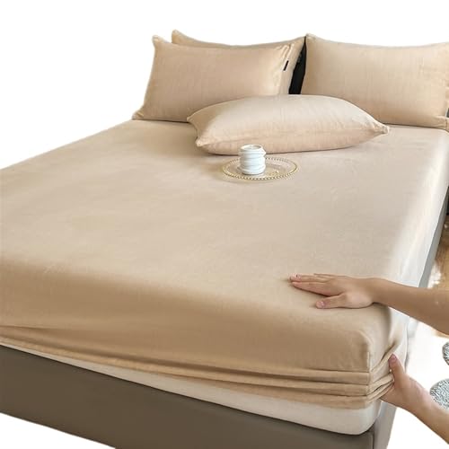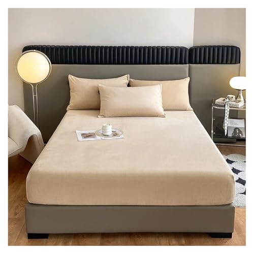 BEAUTYLAST Drap de lit en velours et flanelle - Drap-housse d'hiver doux et fin en polaire chaude et antidérapante - Couleur unie, chaude et confortable - Pour grand lit (beige, 180 x 200 cm)