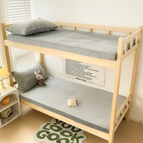 Hiseng Drap Housse en Flanelle, Drap-Housse Bonnet 25 cm avec Élastique Tout Autour, Extra Douce, Respirant, Anti-Plis, Lavable et Ajustable 1/2 Personne Drap (90x200cm,Gris Argent)