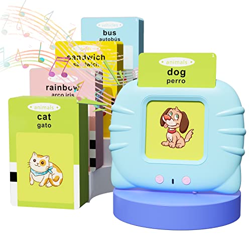 HOMESTEC Speaker Flash Cards Toy Children 1 2 3 4 5 Years Educational Game Audibles for Children 1-6 Years Gifts Girls 112 Sheets 224 Spanish Words Montessori Toy (Blue)