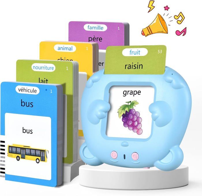Cartes Flash Parlantes Cartes éducatives pour Enfants Talking Flash Cards 112 Feuilles 224 Mots De 3+ Ans Montessori Jouets(Bleu)
