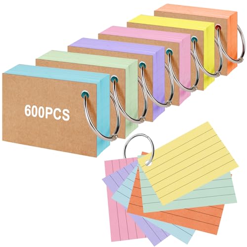 ASFASFq-500 Flash Cards A7 Fiche de Revision Papier Flashcards Cartes Index Lignées 150g/m² avec 10 Anneaux de Reliure 10 Couleurs pour École Bureau Maison Étude Notes