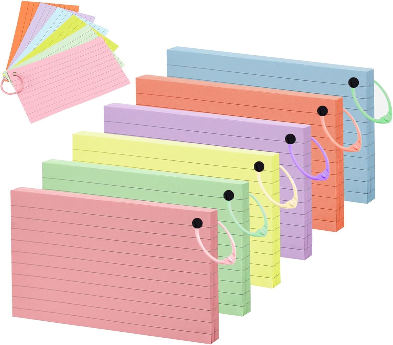 ASFASFq-300pcs Fiche Bristol,Flash Cards Fiches Bristol Flashcards Avec Anneau De Liant, Cartes D'Index LignéEs 3.3 * 4.9 Pouces, Fiches Bristol Pour éTudier ¿ Bureau De L¿éCole, Maison (6 Couleurs)