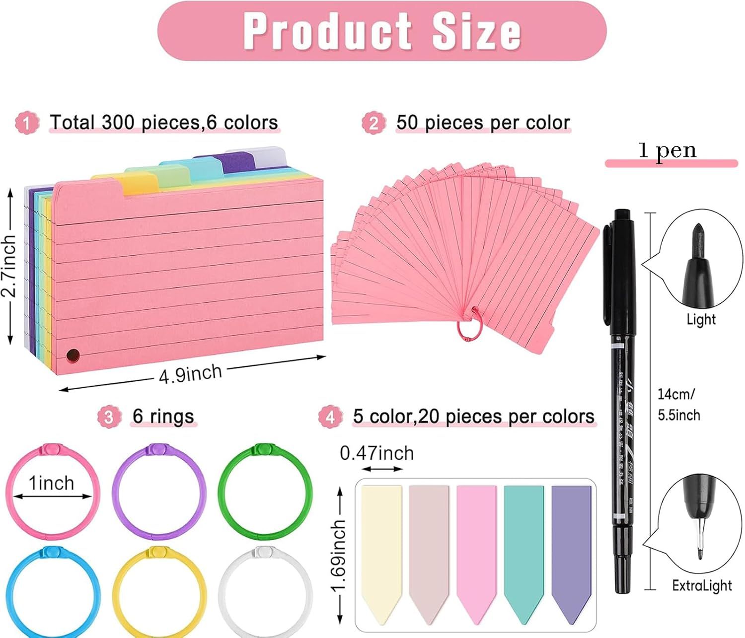 ASFASFq-300 Flash Cards A8,7.5 x 5.1cm Cartes Flash de Vocabulaire,avec 3 Anneaux,Carte Couleu,Fiches,fiche bristol,D'Étude en Papier Carte,pour bureau,école,maison,étude