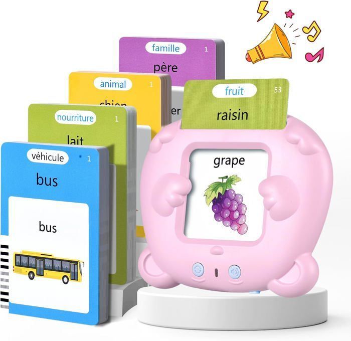 Cartes Flash Parlantes Cartes éducatives pour Enfants Talking Flash Cards 112 Feuilles 224 Mots De 3+ Ans Montessori Jouets(Rose)
