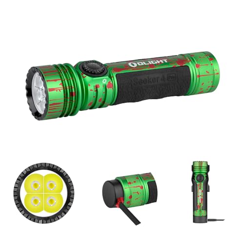 OLIGHT Seeker 4 Pro LED Rechargeable Lampe de Poche 4600 Lumens Portée 260 Mètres Ultra Puissante Militaire 5 Mode d'éclairage IPX8 Étanche Flashlight pour Sauvetage etc (Zombie Green)