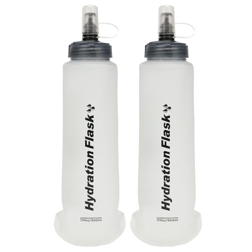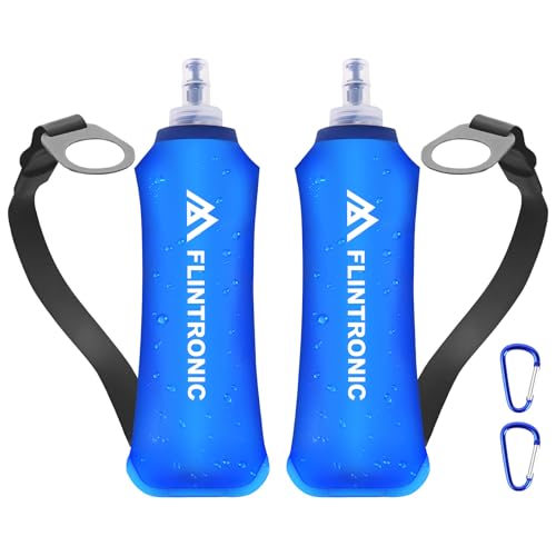 flintronic 2Pcs Gourde Souple, 500 ml/17oz TPU Flasque Running Pliable, Bouteille d'eau de Course, avec Dragonne et Mousquetons, pour Course à Pied, Randonnée, Cyclisme, Escalade