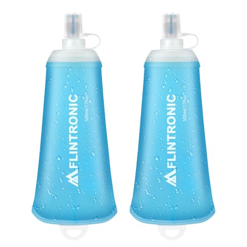 flintronic 2Pcs Gourde Souple, 500 ml/17oz Flasque Running Pliable en TPU, Bouteille d'eau de Course, Sans BPA, étanche, pour Course à Pied, Randonnée, Cyclisme, Escalade
