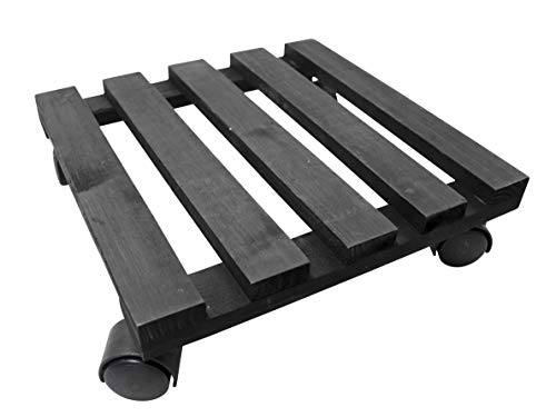 LAMELA Bac à Plantes sur roulettes 40 cm, 36 L - Pot de Fleurs en Plastique Effet Bois - Cache-Pot avec Drainage - Intérieur & extérieur - Résistant aux intempéries et Facile d’Entretien, Noir