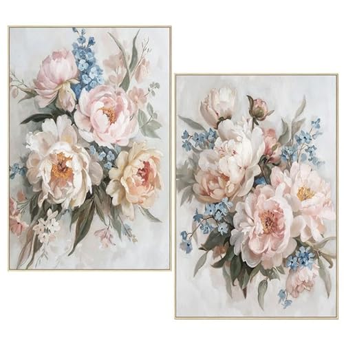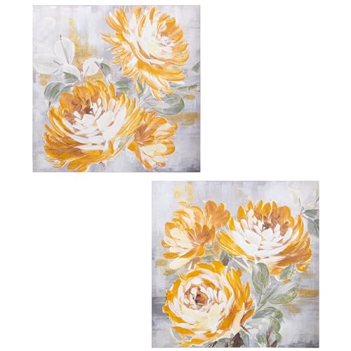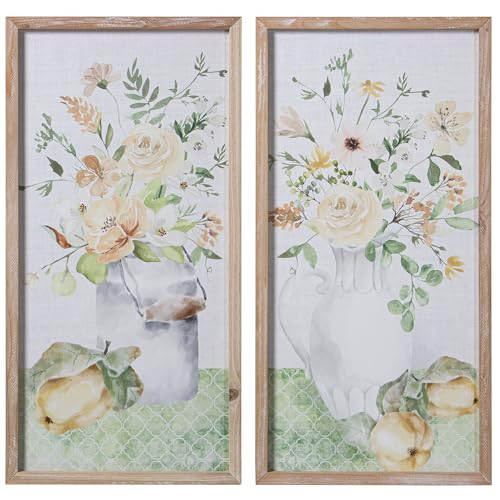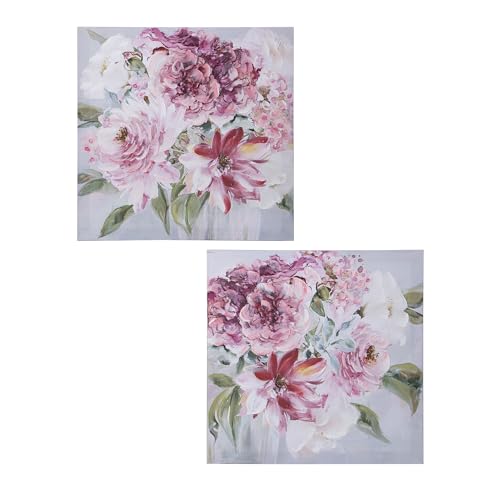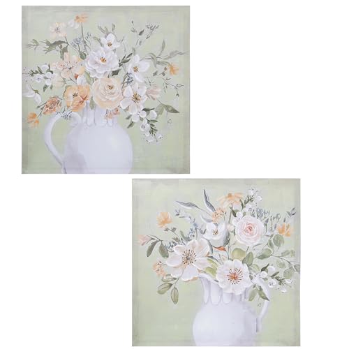 DRW Lot de 2 tableaux sur toile avec un vase avec fleurs en bois teintes pastel 60 x 60 x 3 cm