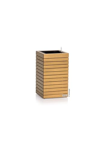 Lechuza PALO Natural Wood 16771 Pot de Fleurs en Bois d'eucalyptus Haut avec système d'irrigation, indicateur de Niveau d'eau et bac à Plantes, Surface en Bois véritable, 34,5 x 34,5 x 59 cm