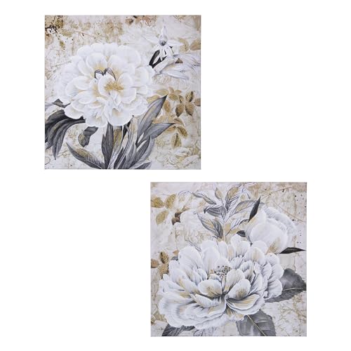 DRW Tableau de Fleurs en Bois avec Cadre Peint à la Main en Blanc 60 x 3 x 60 cm