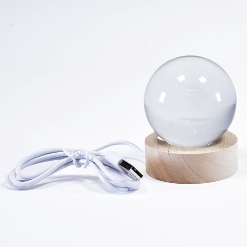 Kögler 52823 - Boule de Verre 3D avec éclairage LED, env. 12,5 x 5,5 x 5,5 cm, Boule de Cristal avec Motif Papillon et Fleurs, Socle en Bois et câble USB Inclus, comme veilleuse ou décoration