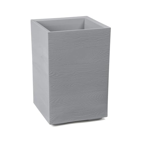 LAMELA Bac à Plantes sur roulettes Hauteur 60 cm, 36 L - Pot de Fleurs en Plastique Effet Bois - Cache-Pot avec Drainage - Résistant aux intempéries et Facile d’Entretien, Gris Clair