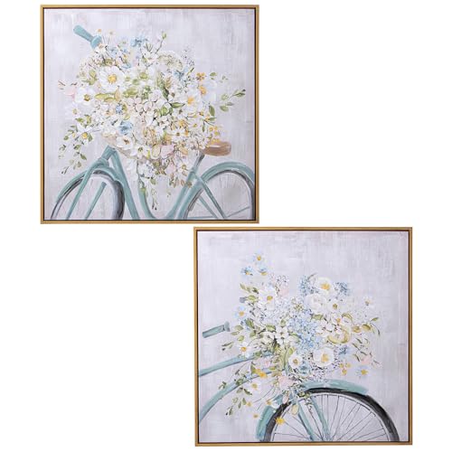 DRW Tableau sur toile avec vélos et fleurs avec cadre en bois de différentes couleurs 60 x 60 x 3,5 cm