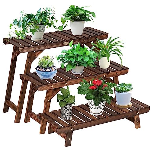 Generisch Étagère à fleurs en bois à 3 pièces - Étagère à fleurs - Escalier de jardin autoportant - Étagère en bois à plusieurs étages