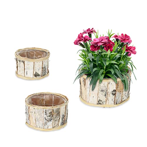 Relaxdays 3 Pots de Fleurs en Bois, Design Rond, chacun ayant Un Film, pour l'intérieur et l'extérieur, Blanc/Nature