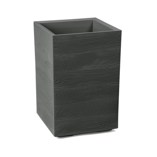 LAMELA Bac à Plantes sur roulettes 40 cm, 36 L - Pot de Fleurs en Plastique Effet Bois - Cache-Pot avec Drainage - Intérieur & extérieur - Résistant aux intempéries et Facile d’Entretien, Anthracite