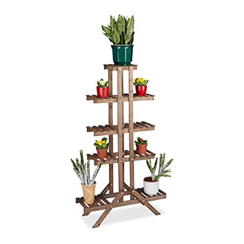 Relaxdays Etagère à fleurs en bois escalier pour plantes échelle plantes intérieur HxlxP: 142,5 x 83 x 28,5 cm brun foncé