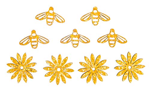 Rayher 46591166 Embellissements « Abeilles et Fleurs », en bois, jaune miel, 9 pces., 3cm, autocollant, décoration, invitations, table, cartes, scrapbooking, printemps-été