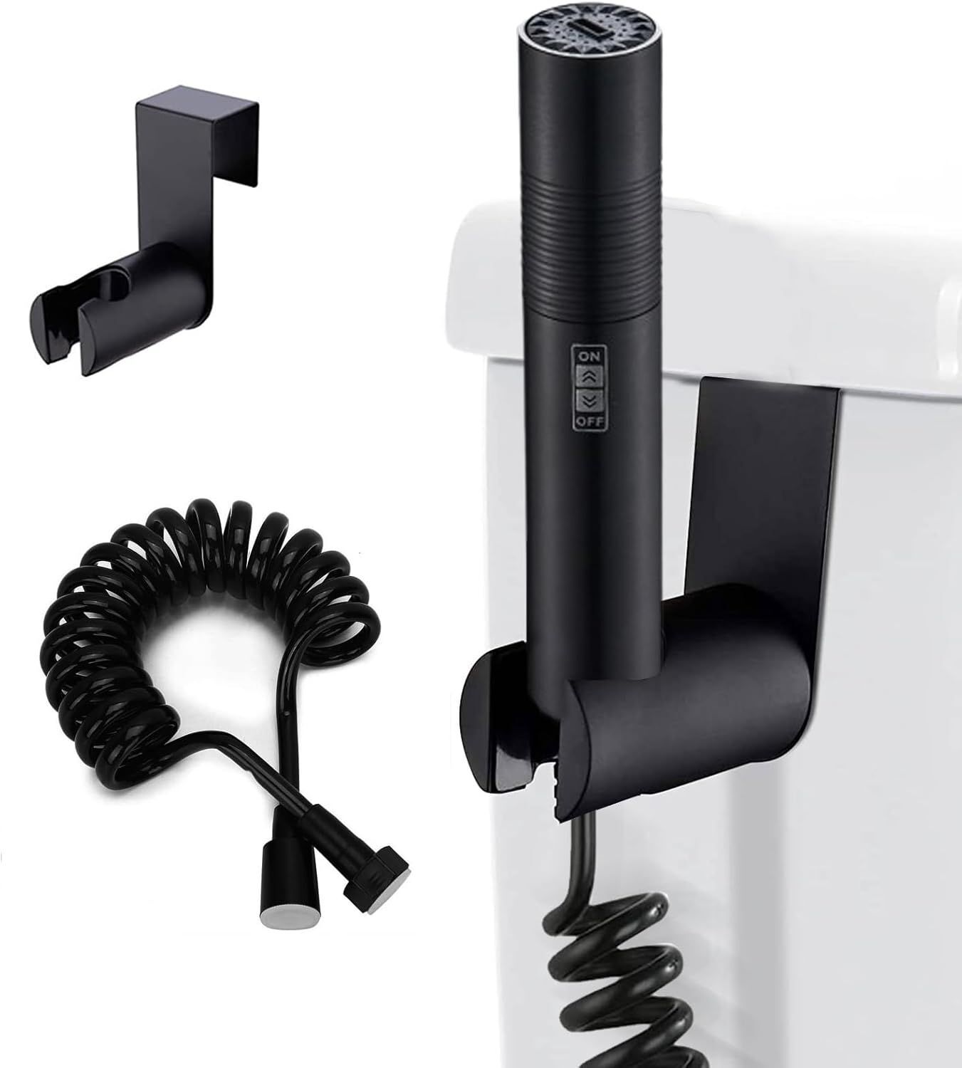 Kit Douchette wc Buse de pression en alliage d'aluminiumavec crochet de réservoir et tuyau de douche flexible de 122 pouces rétractable (noir)