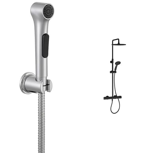 Ibergrif - WC Mitigeur Douche Set avec Flexible, Support, Douchette, Eau Chaude et Froide, Chromé