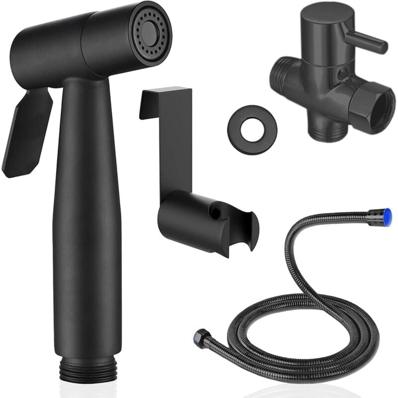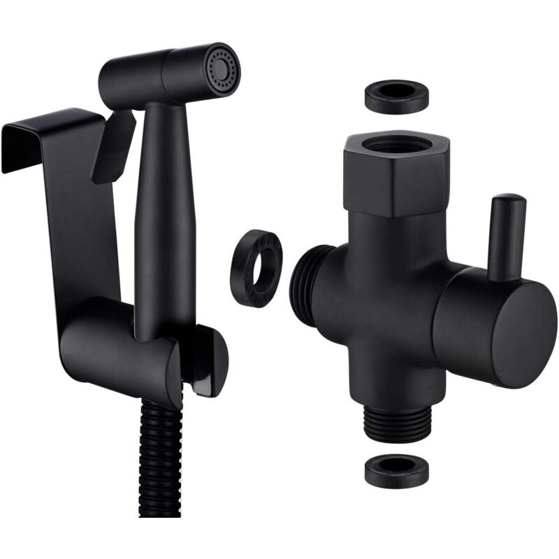 Cyslmuk - Ensemble douchette wc, flexible 1,5 m et support, adaptateur G1/2 noir