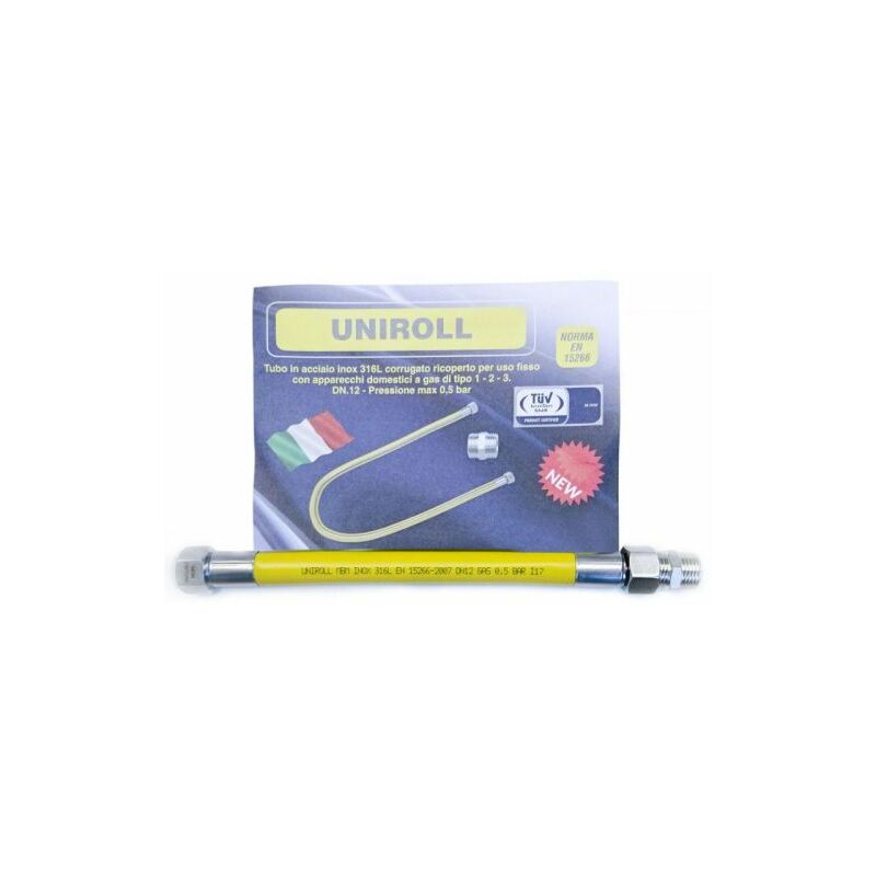 MBM – Tuyau flexible pour gaz inox 300 cm – Norme UNI EN 15266 – Raccord M/F-F/F – Pression max 0,5 bar – Revêtement jaune pour protection - En15266