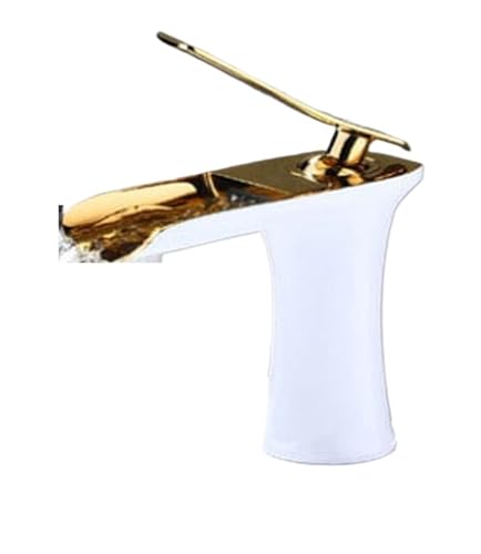 QTANZIQI Robinet de Cuisine Flexible, mitigeur d'évier Blanc chromé, Robinet de Salle de Bain d'eau Chaude Froide à poignée Unique, Robinet d'eau en Cascade monté sur Pont (Blanc Court)