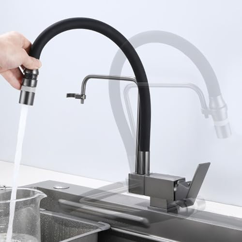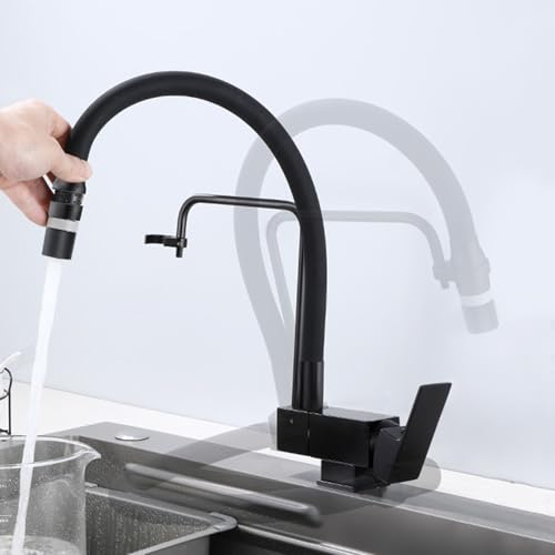 WQPMNYG Robinet de Cuisine Flexible - Mitigeur d'évier pivotant à 360° en Laiton avec Flexible en Silicone, 2 Jets, Bec extractible, Style Moderne Noir.
