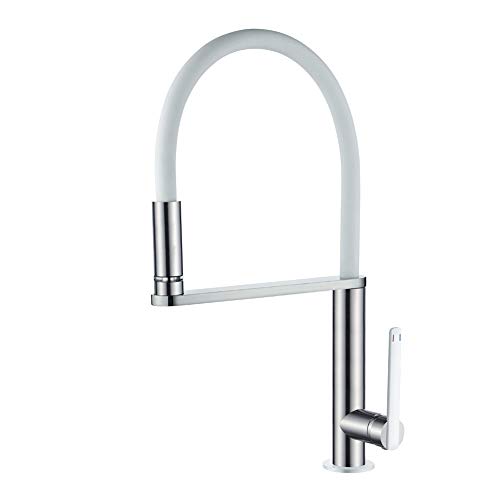 GRIFEMA Irismart-G4002-3, Robinet de Cuisine avec Bec Flexible, Mitigeur d'évier Monocommande, Chrome, Exclusivité Amazon, Blanc/Chromé