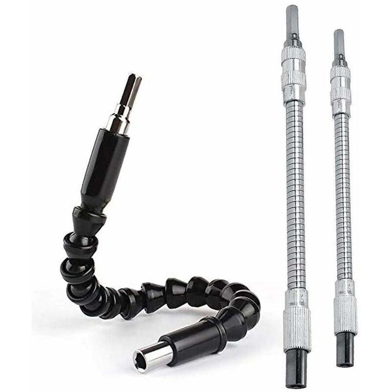 Rallonges Flexibles de Foret, Arbre Flexible pour Perceuse Visseus Tournevis, 1/4'' Tige Hexagonale, 200mm et 300mm (2 Pièces)