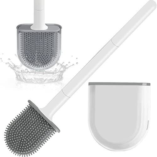 Ensemble Brosse WC et Support,tête de Brosse Flexible pour Cuvette WC avec Poils en Silicone, Brosse pour Cuvette WC de Taille compacte avec Base à Fentes d'aération(Gris), Brosse de Toilette br