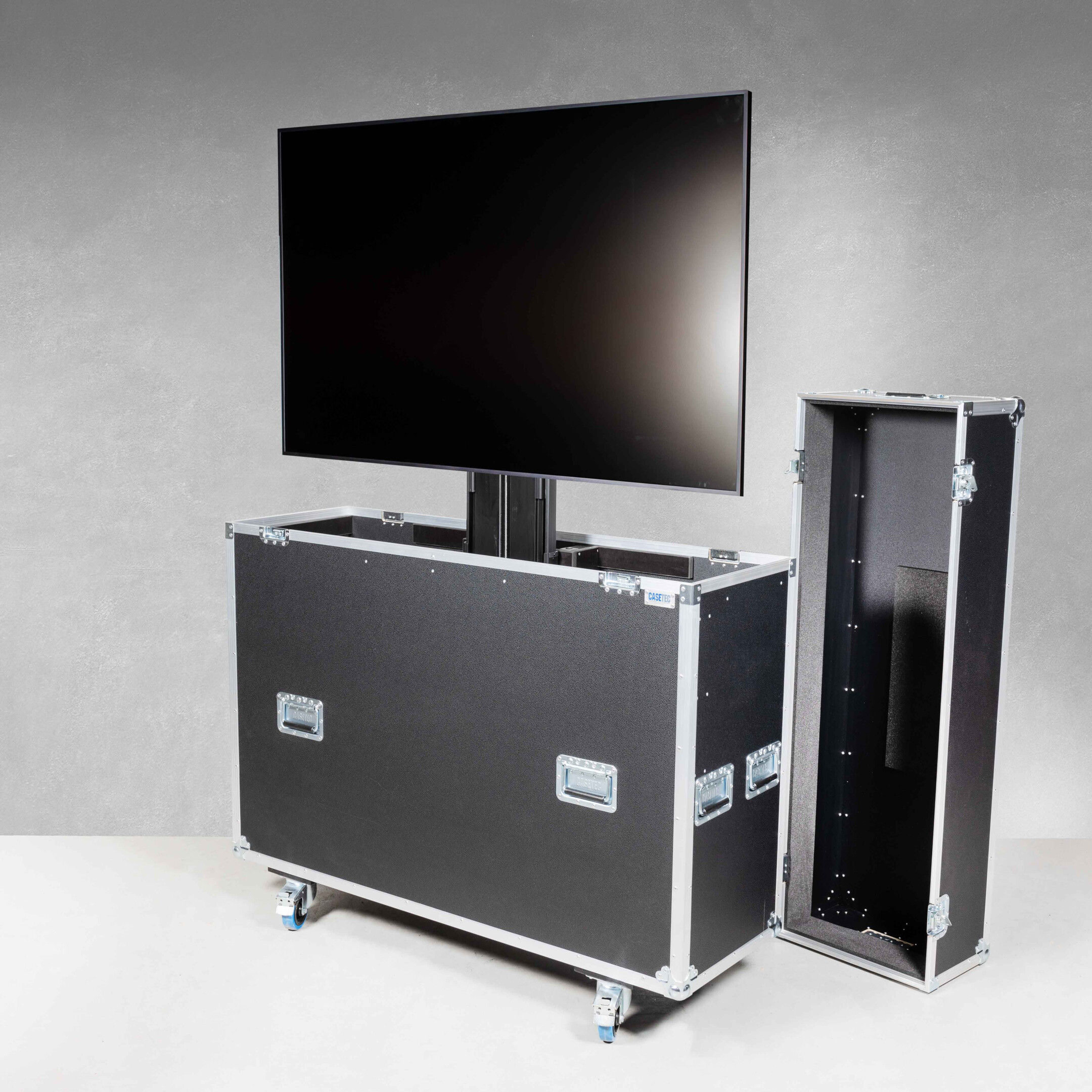 Flightcase Casetec avec élévateur électrique (support d'écran inclus) pour écran Display de 70"-75" | Capacité de charge : 100 kg