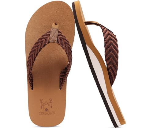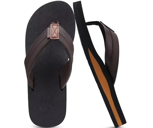 KuaiLu Tongs Hommes été Cuir en Tissu Plage Flip Flops Confort Soutien Voute Plantaire Tongue Sandales Orthopedique Mousse de Yoga Piscine Antidérapantes Douche Claquette marron foncé 42