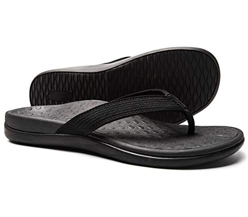 LLSOARSS Plantar Fasciitis Feet sandal with Arch Support - Best Orthotic flip flops for Flat Feet,heel pain- For Women (10 M US, Black)