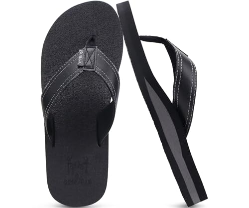 KuaiLu Tongs Hommes été Cuir en Tissu Plage Flip Flops Confort Soutien Voute Plantaire Tongue Sandales Orthopedique Mousse de Yoga Piscine Antidérapantes Douche Claquette noir 42