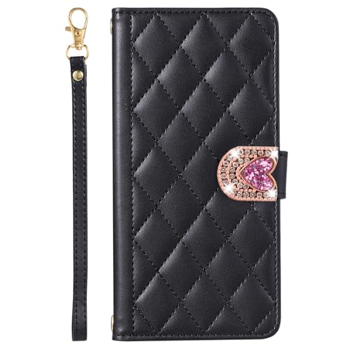 Coque pour Sony Xperia 10 III ,Etui en Cuir PU Portefeuille Antichoc Flip Case Housse avec Fentes de Cartes, pour Sony Xperia 10 III Paillettes Glitter Amour Boucle Motif en Losange Pochette - Noir