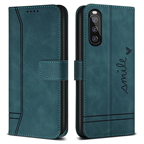 Bravoday Coque pour Sony Xperia 10 III, Etui Cuir avec Magnetique, Flip Pochette Housse pour Sony Xperia 10 III Protection, Bleu
