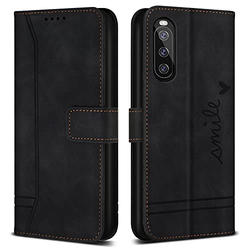 Bravoday Coque pour Sony Xperia 10 III, Etui Cuir avec Magnetique, Flip Pochette Housse pour Sony Xperia 10 III Protection, Noir