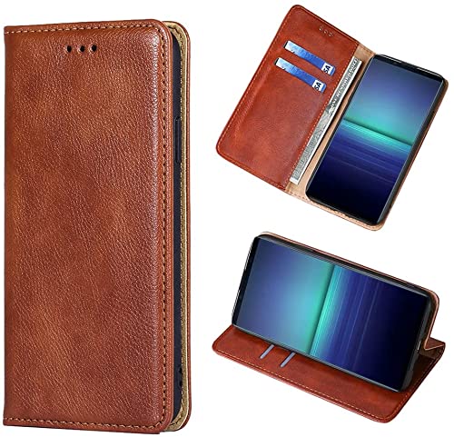 KOUYI Coque pour Sony Xperia 5 III, Premium Flip Housse Étui Protection Rabat Clapet Portefeuille Phone Cover Magnétique [Porte Cartes] Antichoc Béquille Cover (Marron)