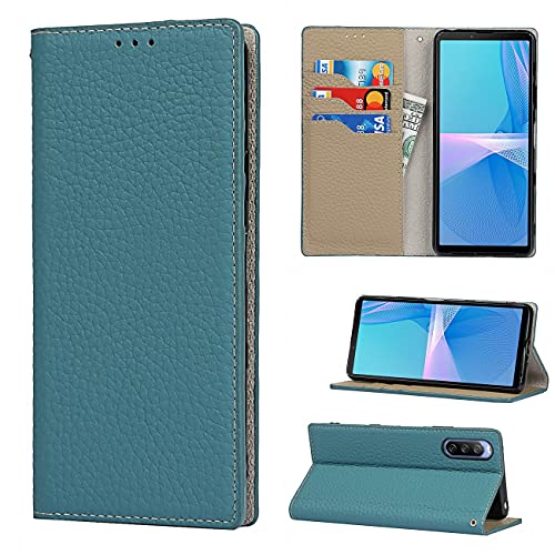 Copmob Coque Sony Xperia 10 III,Cuir véritable Flip Portefeuille Étui en Cuir,[3 Fentes][Fermeture magnétique][RFID Blocker],Clapet Housse Etui Rabat pour Sony Xperia 10 III - Vert foncé