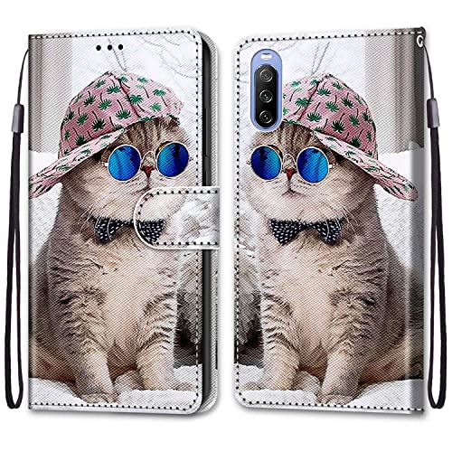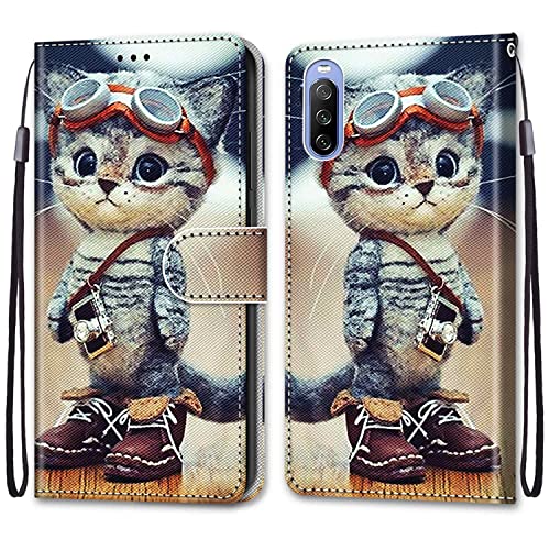Mo-Somnus Coque pour Sony Xperia 10 III, Etui en Cuir PU Portefeuille Housse Coque avec 360 Degrés Silicone Antichoc Protection Cover Cuir Pochette Magnétique und Flip Béquille (Chat 1)