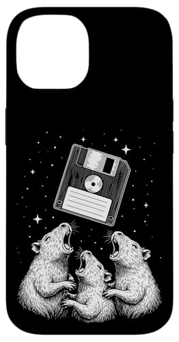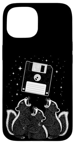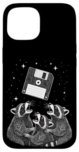 Vintage Space Raccoons Worship Floppy Disk Coque pour iPhone 15
