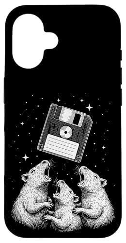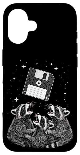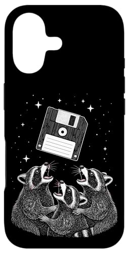Vintage Space Raccoons Worship Floppy Disk Coque pour iPhone 16 Plus