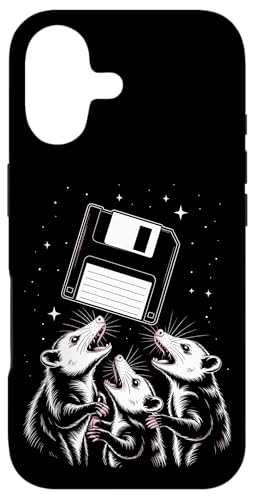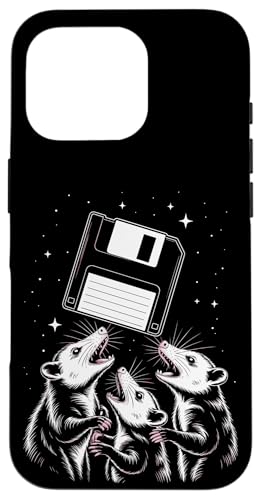 Opossum Worship Retro Floppy Disk Stars Night Coque pour iPhone 16 Pro